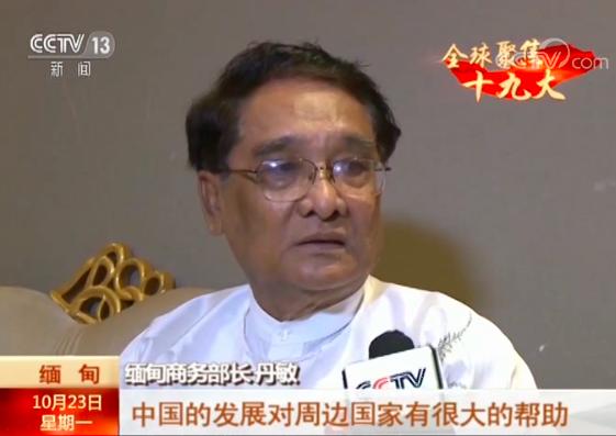 缅甸商务部长丹敏说,他最关注的就是习近平总书记在报告中的关于“中国积极发展全球伙伴关系,扩大同各国的利益交汇点”的表述。