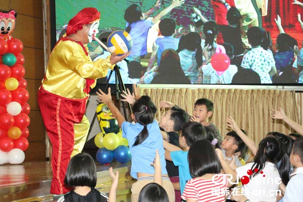 小朋友和“小丑”叔叔亲密互动
