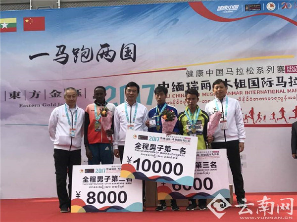 云南网讯(记者 韩焕玉)12月31日下午,在全程胞波女子奖项颁奖结束后,2017中缅瑞丽—木姐国际马拉松大赛圆满收官,中缅及各国7500余名运动员以奔跑的方式跨国、跨年,迎接崭新的2018。