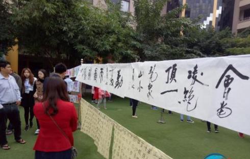 在国学展示中,孩子们流利地背诵数百句国学经典诗文。竖笛演奏时,两位平均年龄为8岁的三年级孩子的电子琴伴奏和指挥,与台下500多名学生的竖笛演奏形成互动,引来观众欢呼。