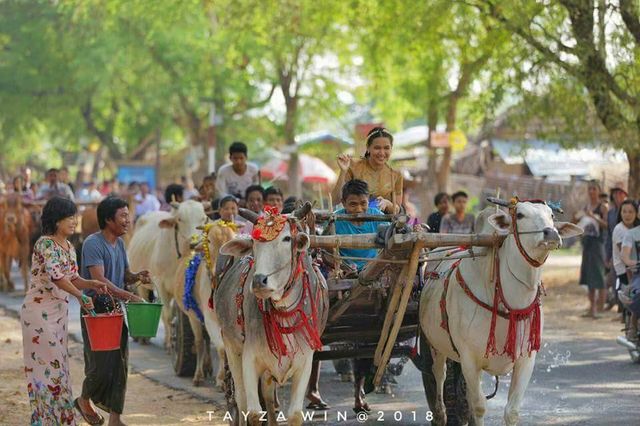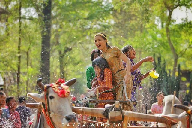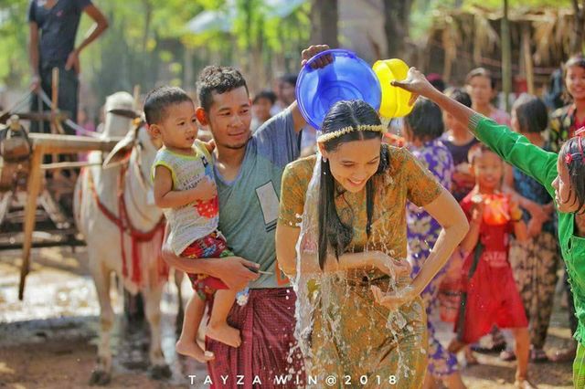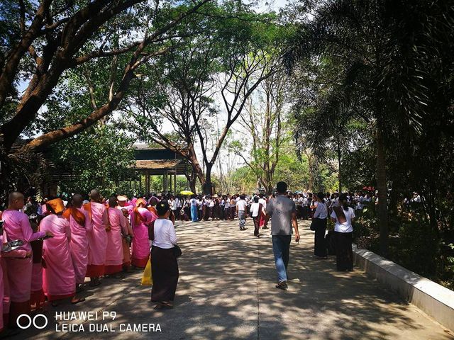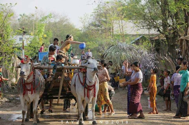 ▼泼水节期间,不少缅甸人选择暂时脱离喧哗的城市,到僻静的农村寺庙修身养性