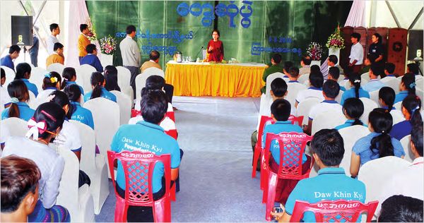 最近一星期,缅甸国务资政杜昂山素季巡视缅甸中部地区,与当地青年们举行座谈,讨论国内和平、教育问题、青年发展方向问题等多项议题。