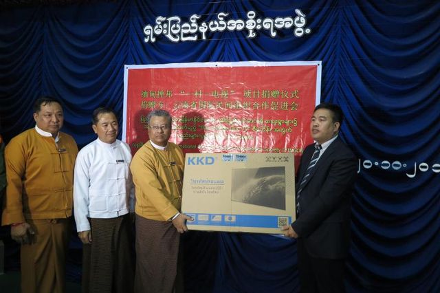缅甸和中国一直是一衣带水,山水相连的友好邻邦,缅甸掸邦地区更是直接与中国云南省接壤。为帮助缅甸掸邦地区部分贫困村庄的村民改善生活条件,使广大村民均有机会及时获取各方资讯,增广见闻、吸收多元化信息,享受丰富多彩的学习、娱乐、生活新模式,云南省国际民间组织合作促进会(Yunnan International Non-Government Organization Society,简称YINGOS)与瑞丹伦(Shwe Than Lwin)公司合作,在掸邦开展了“一村一电视”公益捐赠活动。该项目为掸邦地区120个村庄提供每个村庄1套电视设备(包括1台电视机、1台卫星接收器、1块太阳能电池板和3年的Skynet卫星电视服务),受益村庄包括掸邦北部80个村庄,南部35个村庄,东部5个村庄。