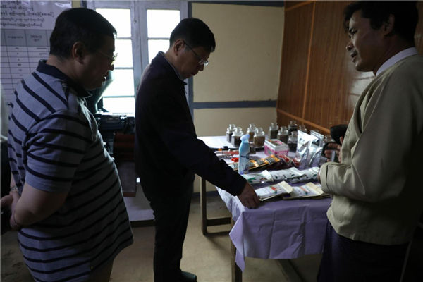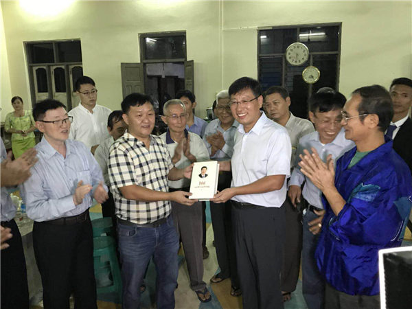 洪亮大使一行慰问钦邦和实皆省华人华侨代表,参观华人会馆。