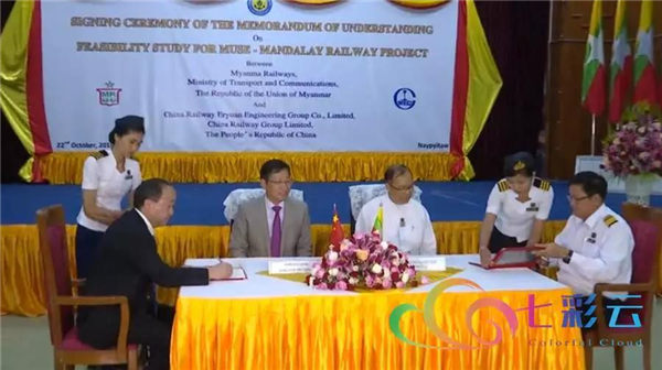“这里是缅甸交通与通讯部,今天中缅木姐——曼德勒铁路可行性研究备忘录签字仪式在这里举行。我们知道,木姐—曼德勒铁路是中缅铁路连通项目(缅甸境内)的起始段,可以说这段铁路一旦修通,中缅铁路建设将迈出关键性的一步。”
