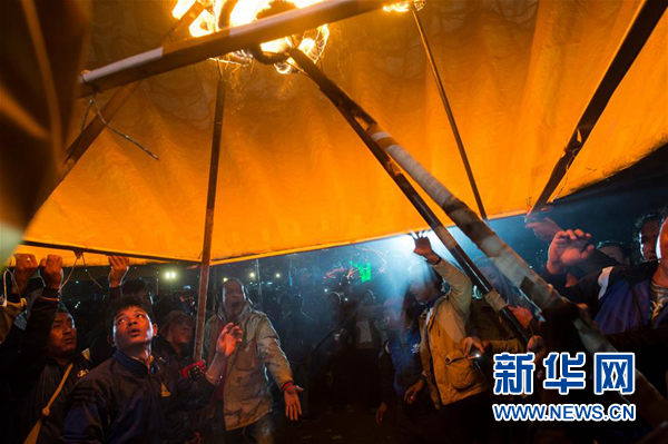 ↑11月14日,在缅甸东枝,人们准备放飞热气球。 新华社/法新