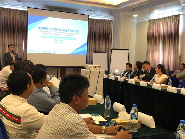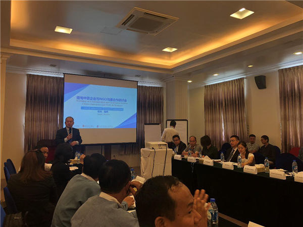 来自缅中友好协会会长U Sein Win Aung、缅甸中国企业商会旅游分会会长刘伟、中国工业经济联合会社会责任促进中心主任、北京融智企业社会责任研究院院长王晓光致会议开幕辞。缅甸商业责任中心研究联络部经理Ma Hnin Wut Yee、DFDL律所高级法律顾问Nar Wah、国家电投伊江公司公共关系部副主任郭宇、万宝矿产仰光办事处主任董云飞、苏美达缅甸双赢服饰公司行政人事部主任李恭明等参会嘉宾做主题发言。联合国儿童基金会、世界展望会、缅甸健康救助协会、前联合国秘书长吴丹之家、恩惠之家、慈海基金会、丝路伙伴国际志愿者联盟、金象缅甸建筑防水公司、中国通信建设集团和卡玛机电公司等参会代表,就企业如何加强与NGO沟通合作进行了研讨。