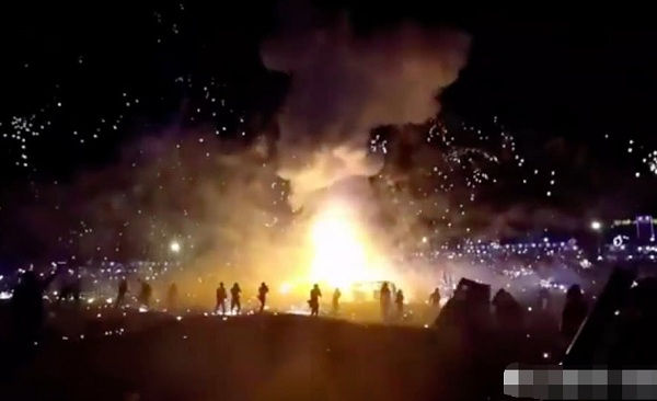 11月14日, 在缅甸东枝举行的一年一度的热气球节上, 热气球被焰火瞬间吞没。据悉,该热气球载了足足18公斤的自制炸药。