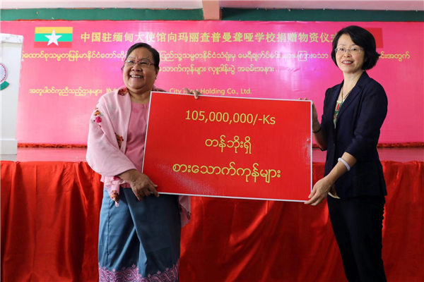 玛丽·查普曼聋哑学校校长杜纽纽登感谢中国驻缅甸使馆为学校提供帮助并表示,过去的一年,中国大使馆的捐助使这里的聋哑儿童得到充足的食品和生活用品。今年,学生人数增加,校方每天都在为食物来源发愁,中国大使馆及时施以援手,令我们十分感动。此次捐赠极大解决了学校的燃眉之急,我们衷心感激这份真挚的“胞波”情谊。