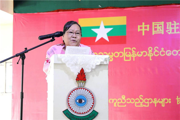 王雪鸿女士致辞表示,玛丽·查普曼聋哑学校是缅甸仅有的三所聋哑学校之一,自1920年成立以来,接纳了缅甸各地许多聋哑孩子,并有针对性地提供教育和技能培训。去年,中国驻缅甸大使馆得知孩子们生活面临困难,专门出资6000万缅币并委托City Mart超市向学校提供了为期一年的食物和生活用品。今年,了解到学生人数有所增加,为满足学生现实需求,中国大使馆将资助总额提高至一亿五百万缅币。愿中国大使馆的微薄之力,能让孩子们的身体素质和生活质量获得一些提高。同时,向City Mart超市的优质服务表示衷心的感谢。