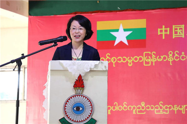 中国驻缅甸大使夫人王雪鸿出席驻缅甸使馆向玛丽·查普曼聋哑学校捐赠物资仪式