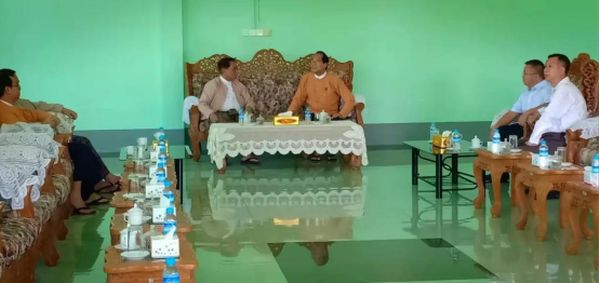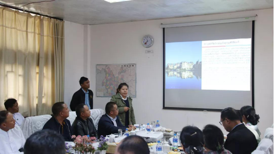 10月4日,缅甸联邦商务部副部长吴昂图、克钦邦经济部长吴伟林、掸邦经济部长吴苏纽伦等领导一行实地调研甘拜地边境经济合作区项目。吴昂图副部长在甘拜地联检楼会议室召开调研会议,项目开发主体缅甸恒亚投资开发有限公司领导吴崩朗、吴英昌、彭安强等向调研组各位领导汇报了项目规划和最新工作进展情况。