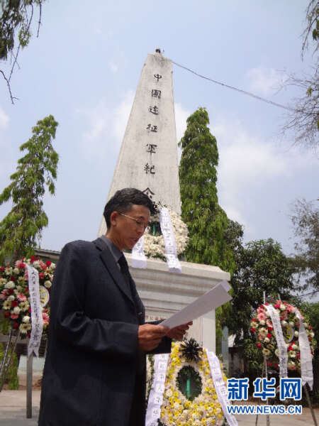 缅甸华人华侨代表在中国远征军纪念碑前献花圈
