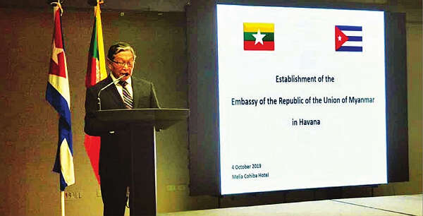 缅甸大使馆在古巴哈瓦那市设立,除了加强缅古之间的外交关系外,对加勒比海地区的各国与缅甸之间的交往,也将起巨大的推动作用。缅甸国务资政部联邦部长于10月5日由哈瓦那返回纽约,并于10月10日回抵仰光市。