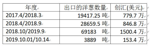 历年来由105英里贸易区向中国出口的洋葱总数如下表: