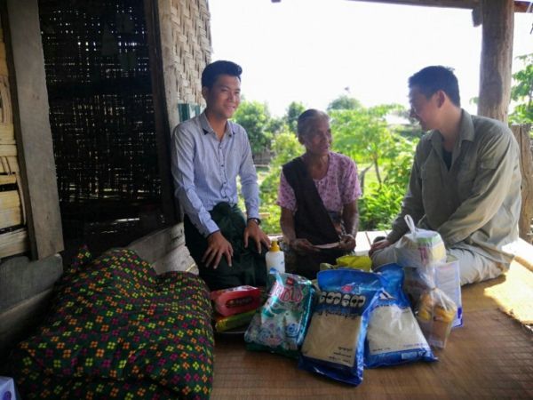 第二天,项目部一行人就采购了大米、棉被、点心、常用药品和日化用品等,来到线路沿线的Myint Doo, Pay Kone 和 Padonema三个村庄慰问包括阿婆在内的多名贫苦老人,为他们测量血压,还为每位老人捐赠了生活补助金。