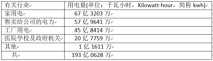 在12月17日的《缅甸之光》报上又发布了两组图表,一是2018—19年度缅甸全国按月的用电量,另一是各行各业的用电量。具体数据如下: