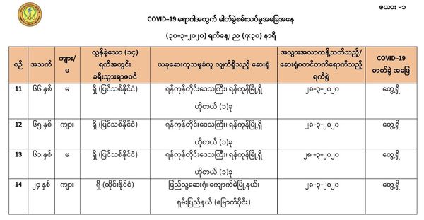 第14号病例是居住在掸邦北部的皎脈市(Kyautmae)的24岁缅籍男子。