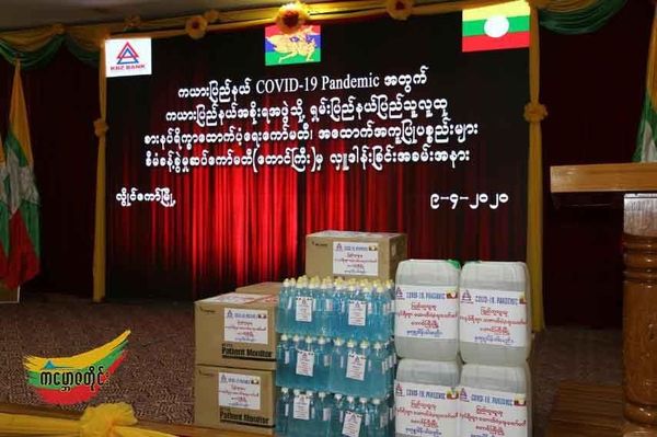 为了抗击新冠肺炎疫情,掸邦政府和掸邦公共食品供应委员会,将KBZ银行捐赠的3亿缅币为基础,以及市民的慷慨资助,为掸邦基层贫民百姓提供了10万份爱心包,每份爱心包里有3比(缅斗)大米、1拽鹰嘴豆、0.18拽油。