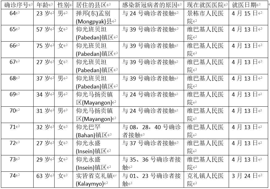 缅甸卫生暨体育部于4月15日上午10:30分发出公告,介绍缅甸国内新冠病毒