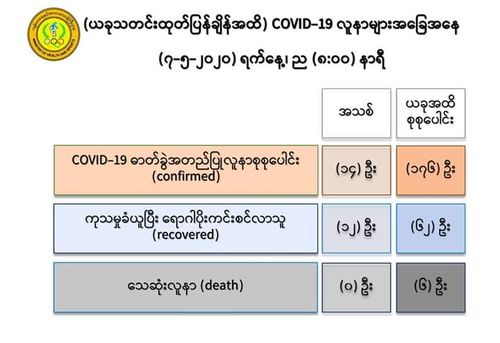 缅甸卫生暨体育部于5月7日晚上8时及5月8日上午7时分别发出公告,介绍缅甸国内这新冠病毒疫情发展的最新情况。