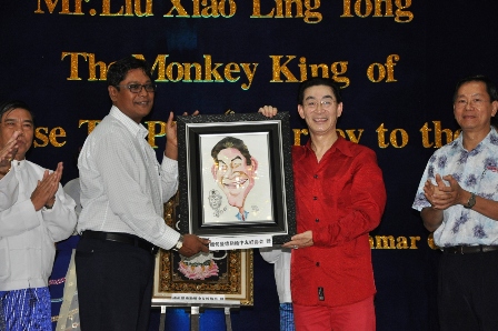 会上,首先由曼德勒缅中友好协会会长吴博敏先生致欢迎词。吴博敏先生说,缅中友好协会今日能够接待世界著名演员六小龄童的到来感到十分荣幸。
