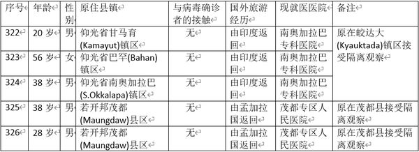 至此,缅甸国内新冠病毒确诊人数增加到326人。