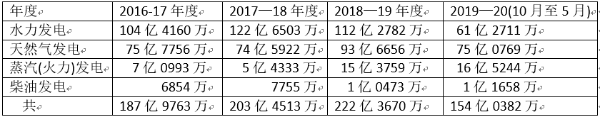 缅甸国内电力生产情况(单位:千瓦小时Kilowatt-hour)