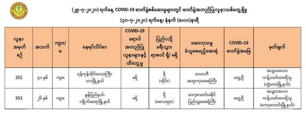 至此,缅甸国内新冠病毒确诊人数增加到353人。