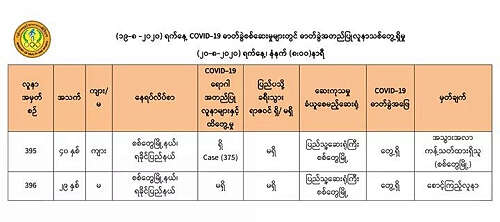 至此,缅甸国内新冠病毒确诊人数增加到396人。