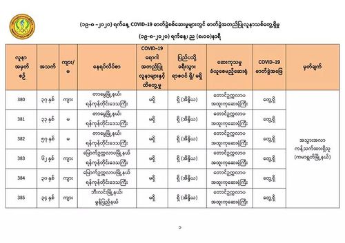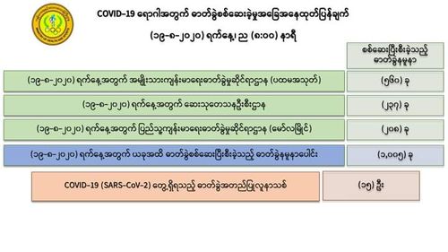 缅甸卫生暨体育部于8月19日晚上8时及8月20日上午8时分别发出公告,介绍缅甸国内这新冠病毒疫情发展的最新情况。