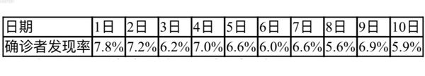 12月份的头10天内,每天化验检查发现确诊者的百分率如下表: