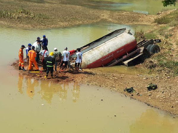 事故发生在2月28日上午10时30分左右,掸邦格劳镇(Kalaw)东枝-昂班高速公路130英里里程碑处,一辆从达喜市(Thasi)方向前往东枝市(Taunggyi)的油罐车倾覆至达脉康河(Tha Mai Kham)中,导致两人当场死亡。