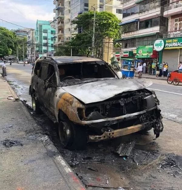缅甸歌手Yong Lay的汽车被纵火烧毁