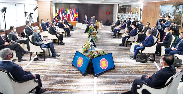 缅甸国家行政委员会主席在发言中表示缅甸将加强与东盟国家合作,介绍了缅甸国家国内的情况。会议结束后,缅甸领导人一行前往机场准备启程回国。在机场的休息室,接见了缅甸大使馆的工作人员们及家属,向他们介绍了缅甸国内的政局变化情况。之后乘坐专机回国,于缅甸时间晚上10时45分回抵内比都机场。