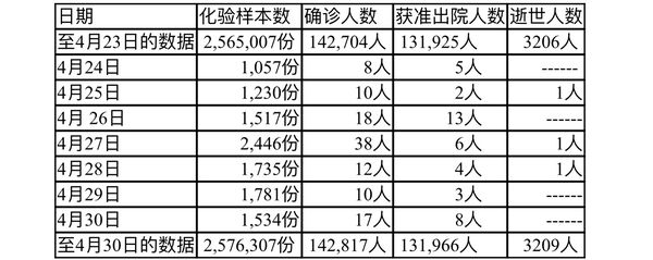 缅甸卫生暨体育部每天晚上8时都按时发出公告,介绍国内疫情发展的最新情况。由4月24日至4月30日每晚8时时所公布的情况分别如下:
