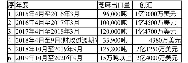 最近几年来缅甸芝麻的出口及创汇情况如下表: