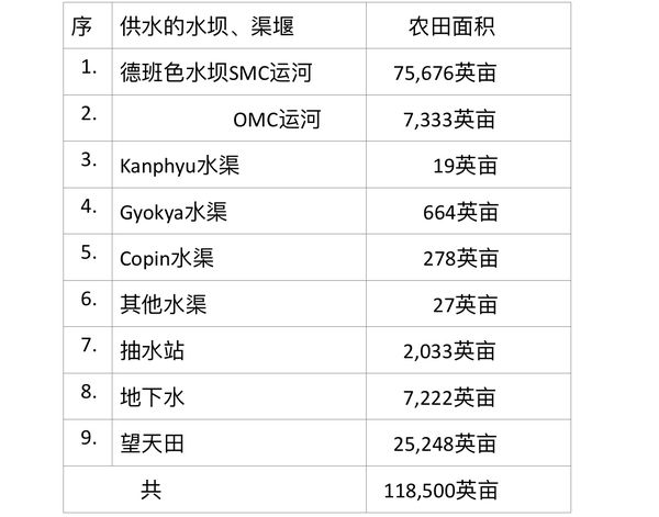 瑞帽县今年雨季稻种植时各渠堰的供水计划