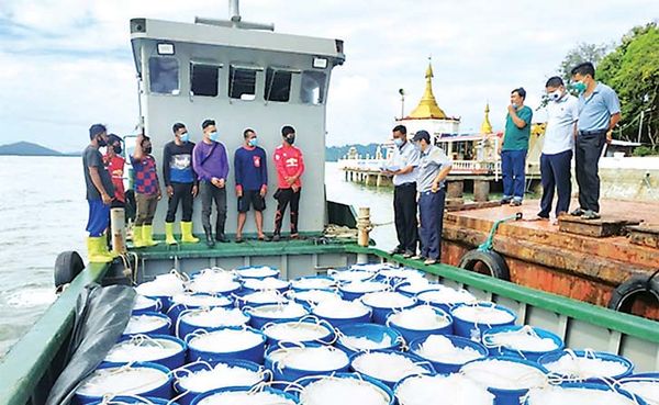 在这新冠疫情假期期间,由海路出口水产品125货柜,总重量为2904.53公吨,创汇646.6万美元。由航空出口1042.406公吨货物,创汇505.6万美元。由妙瓦底(Myawady)、高栋(Kawtaung)及梯客(Hteekhee)边贸口岸出口3576.348公吨水产品,创汇410.3万美元,这是由渔业工作局处获知的讯息。