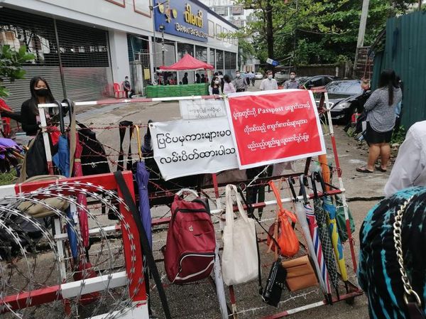 缅甸出入境管理局于9月13日恢复了业务办理,当天有众多人来排队办理护照。据悉,更新护照和申请新护照的人从9月13日上午6时左右开始,在扬金镇区乌茵路入口处排队等候。