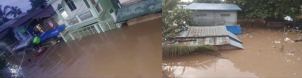 据妙瓦底居民称,因道茵河水泛滥,妙瓦底市的四个低洼小区遭水淹没。