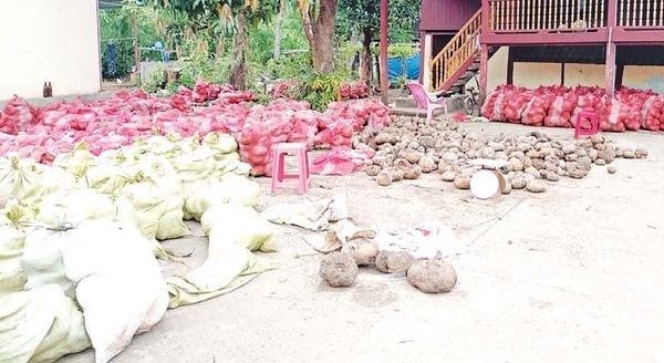 克伦邦巴本(Papun)专区格马蒙(Kamamaung)县区农民们栽种的魔芋(缅语称为Wa-U),今年由于国外购买力疲弱,无法获得好价钱。