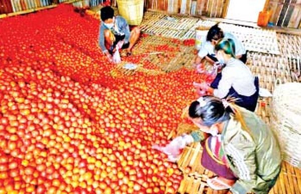 该台湾品种番茄近期每天都大量涌进曼德勒市场,价钱也走俏。现在穆河流域地区的敏务(Myinmu)、蒙育瓦(Monywa)、马达雅(Madaya)等县区生产出来的台湾品种番茄1缅斤最高价到达2400至2500缅元。此外,其他鲜货作物诸如菜花、卷心菜、马铃薯及油菜等,也都同样获得了好价钱。