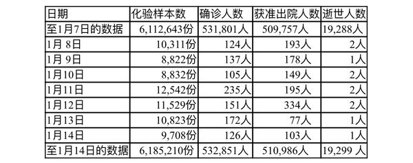 缅甸卫生部2022年1月8日至1月14日每晚8时时所公布的疫情情况分别如下: