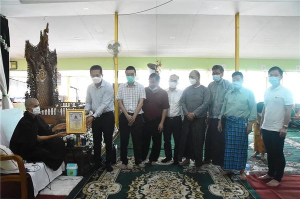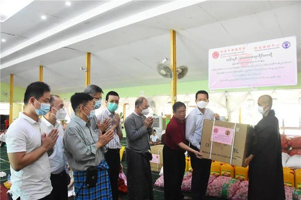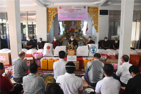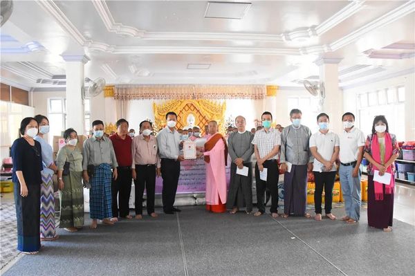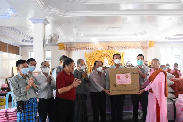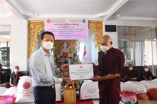 向ThaBarWa Center禅寺捐赠20000个口罩、10台氧气机、200袋大米、食用油200缅斤、洋葱600缅斤、大蒜125缅斤、食盐100缅斤、土豆250缅斤,共价值17,615,000缅元;