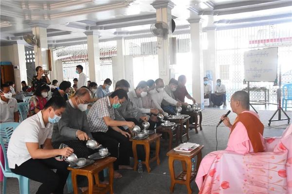 向Aung Takhon Pariyatti 和尚庙捐赠4000个口罩、2台氧气机、50袋大米、食用油50缅斤、洋葱150缅斤、大蒜25缅斤、食盐50缅斤、土豆50缅斤,共价值3,962,500缅元;
