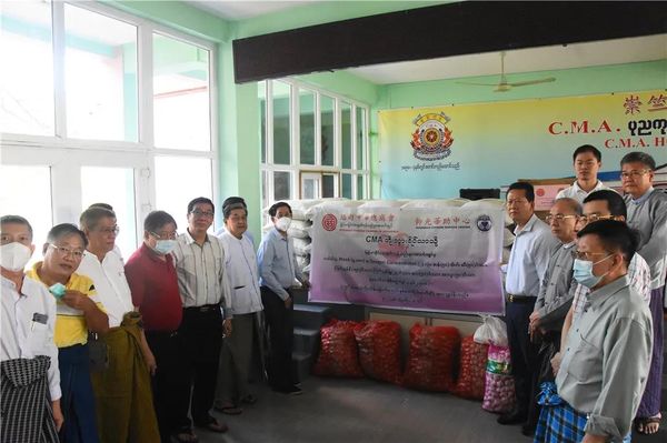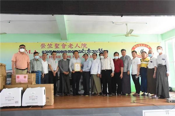 向崇竺圣会老人院捐赠4000个口罩、2台氧气机、50袋大米、食用油50缅斤、洋葱150缅斤、大蒜25缅斤、食盐50缅斤、土豆50缅斤,共价值3,962,500缅元。
