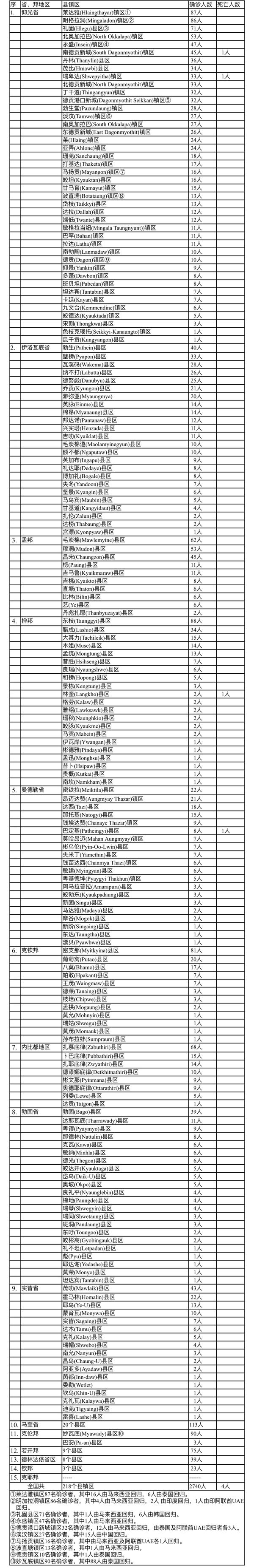 缅甸卫生部于2月17日下午7时发布公告,全国各省邦2月16日的确诊人数共为2740人,死亡人数4人,具体数据如下表: