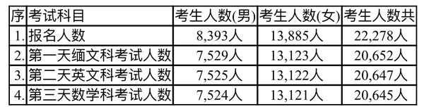 克伦邦今年参加大学入学考试的学生不到6千人
