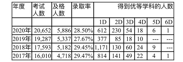由2017年至2020年期间克伦邦的这大学入学考试成绩如下表: